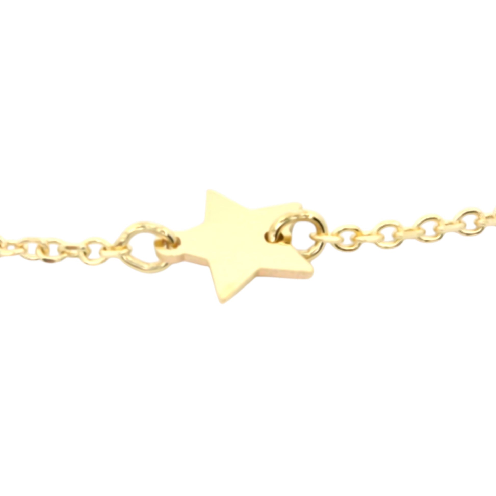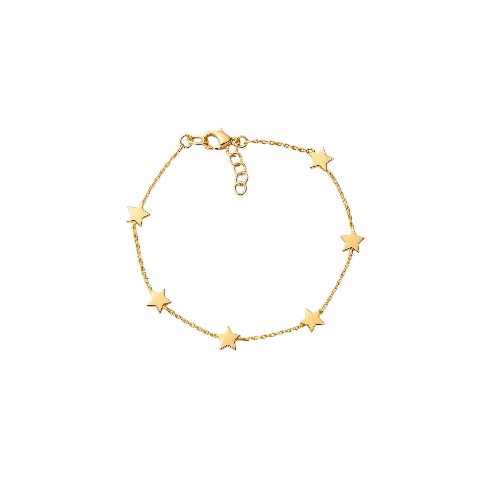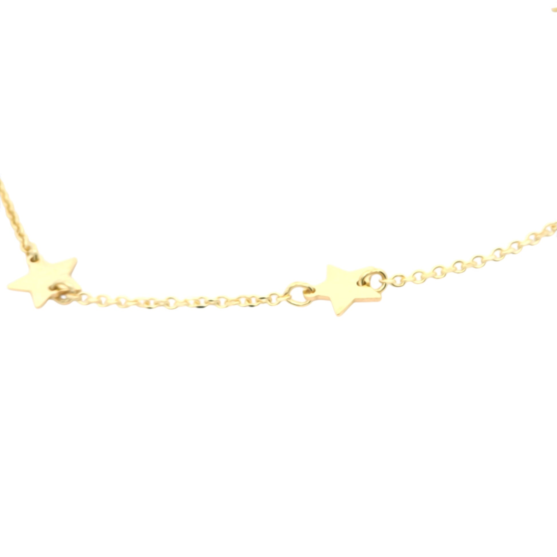 Brățara este prevăzută cu sistem de închidere sigur și lanț de ajustare, pentru o fixare confortabilă pe încheietură. Finisajul atent evidențiază strălucirea aurului și conturul steluțelor, oferind un aspect armonios și feminin.