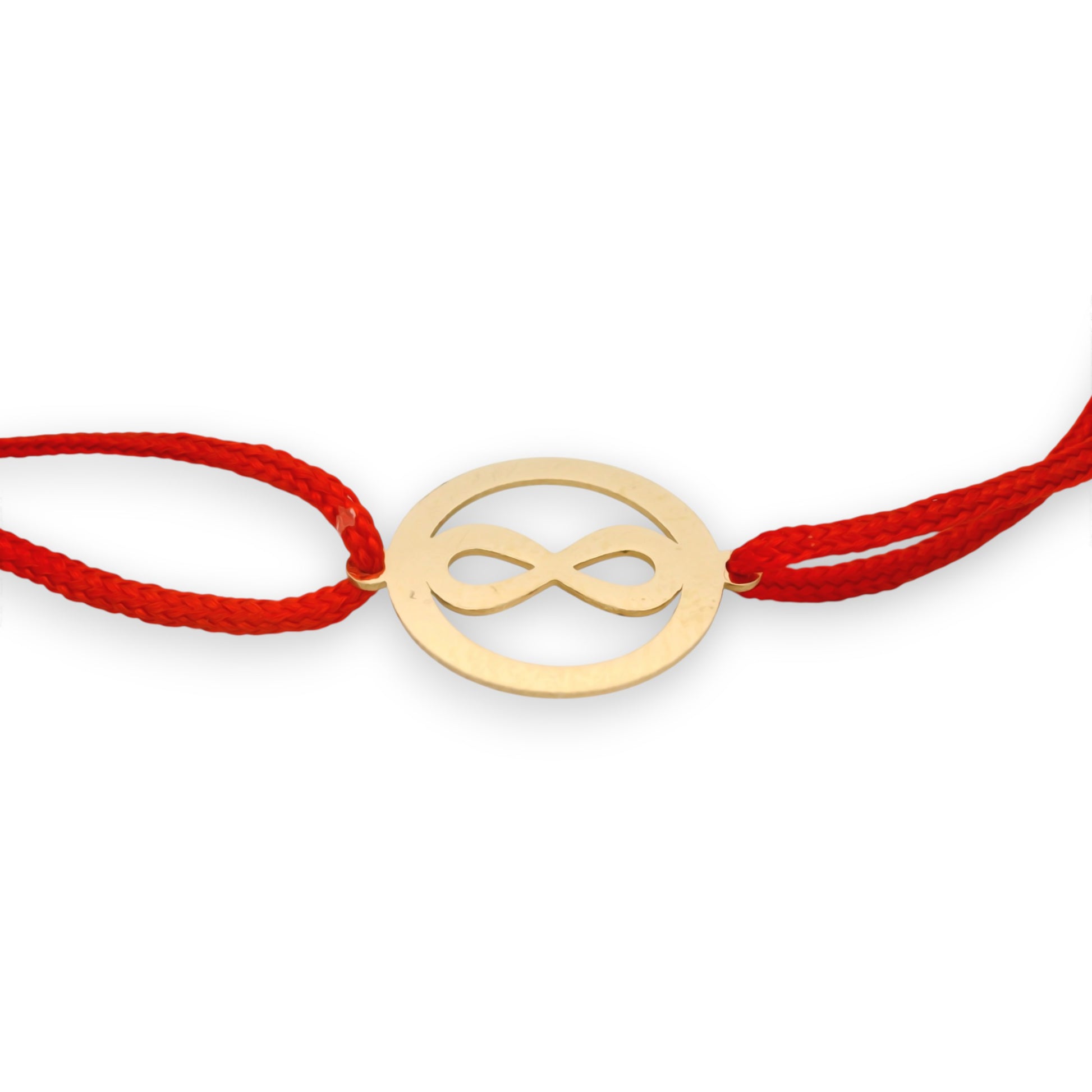 Brățară delicată și plină de simbolism, realizată pe un șnur roșu simplu, fin și rezistent, asociat adesea cu protecția, norocul și energia pozitivă. Designul minimalist al șnurului pune în evidență piesa centrală: un pandantiv în forma simbolului infinit, elegant și armonios, înconjurat de un cerc fin din aur de 14K.
