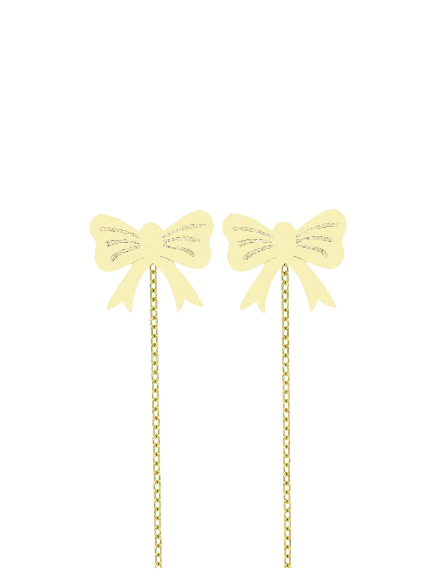 Un accesoriu delicat și feminin, acești cercei din aur îmbină finețea lănțișorului cu farmecul unui model de fundiță. Designul jucăuș și elegant în același timp adaugă un plus de grație oricărei ținute, fiind ideali atât pentru purtarea de zi cu zi, cât și pentru ocazii speciale. Realizați din aur de înaltă calitate, cerceii se remarcă prin strălucirea lor rafinată și prin modul subtil în care pun în valoare trăsăturile feței.