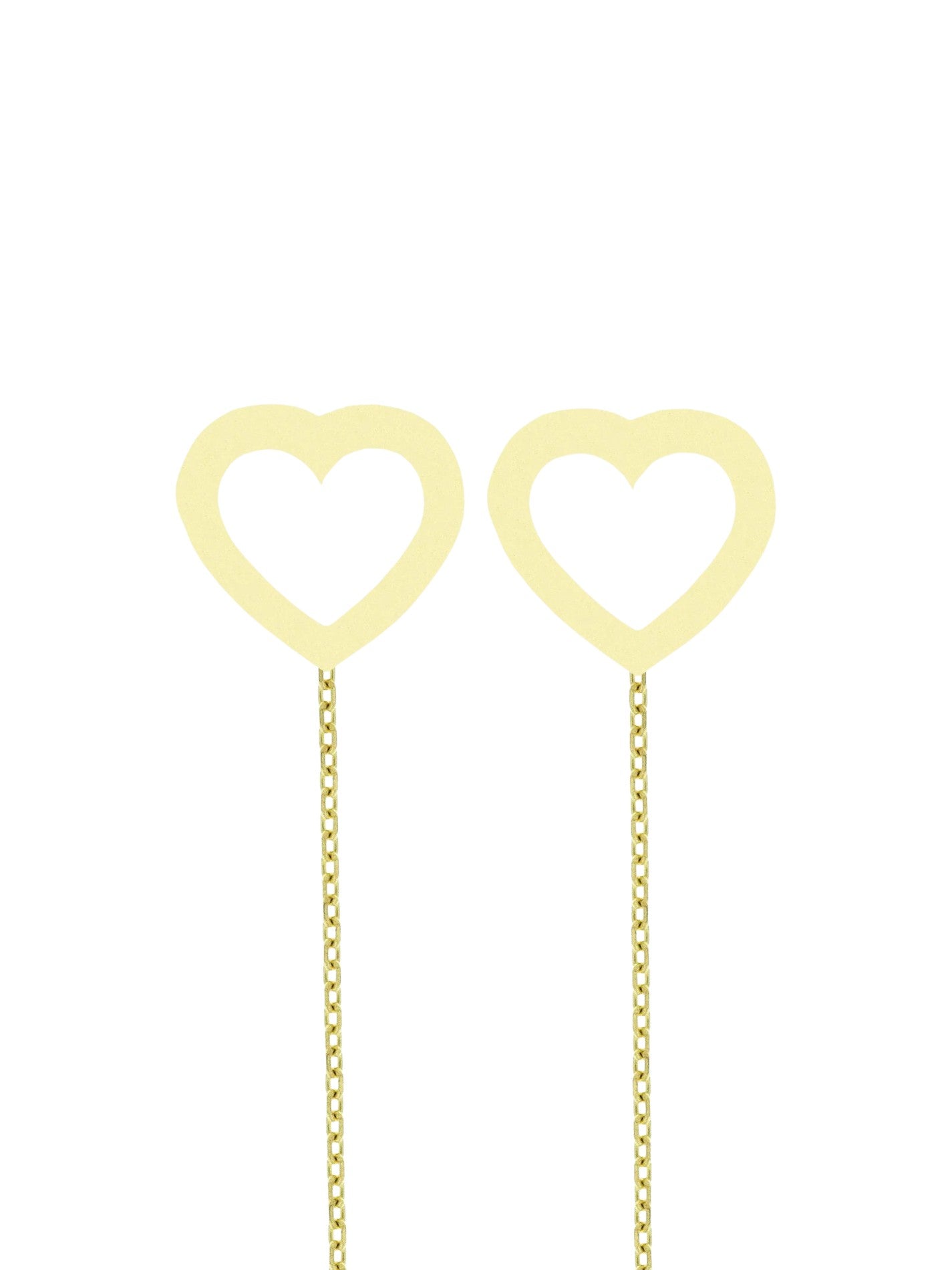 Cercei eleganți din aur, cu lanț delicat și pandantiv în formă de inimă simplă. Designul minimalist și rafinat îi face potriviți atât pentru purtarea zilnică, cât și pentru ocazii speciale, adăugând un plus de eleganță oricărei ținute.