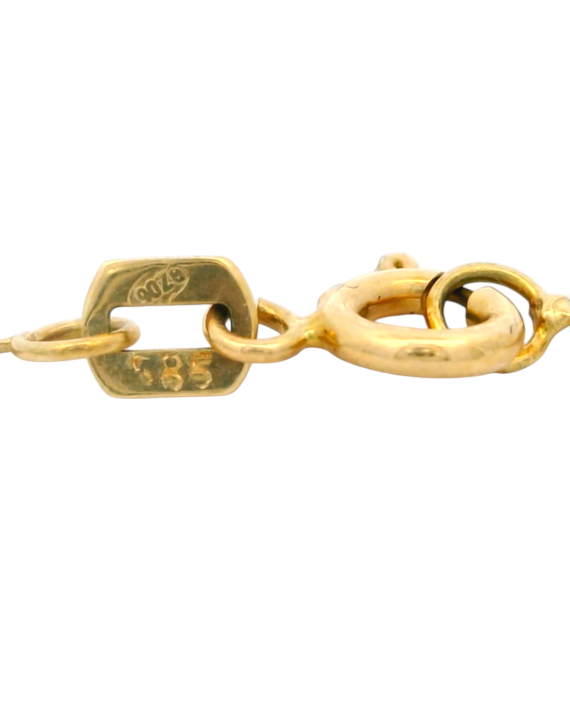 Lănțișor din aur fin, cu pandantiv delicat, având o greutate de aproximativ 1.37 grame. Designul său minimalist și rafinat îl face alegerea ideală pentru doamnele și domnișoarele care preferă bijuterii discrete, dar elegante. Ușor de asortat atât la ținute de zi, cât și la ocazii speciale, acest lănțișor este un cadou perfect pentru a surprinde prin simplitate și bun gust.